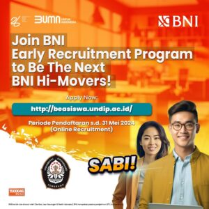 Berdasarkan inforrnasi dari PIC Beasiswa Bank Negara Indonesia (BNI ERP) tanggal 26 April 2024 perihal Pemberitahuan Program Beasiswa Bank Negara Indonesia (BNI ERP) Tahun 2024