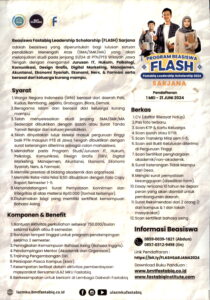 Menindaklanjuti Informasi dari PIC Beasiswa Flash Fastabiq perihal pembukaan program Beasiswa Flash (Fastabiq Leadership Scholarship), berikut kami informasikan ketentuan seleksi Beswan Djarum 2024/2025 sebagai berikut: