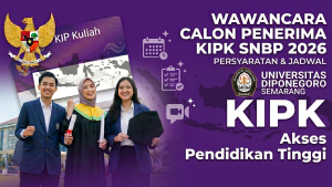 Universitas Diponegoro melalui Direktorat Kemahasiswaan dan Alumni resmi mengumumkan jadwal pelaksanaan wawancara bagi calon mahasiswa penerima KIP Kuliah jalur SNBP tahun akademik 2026/2027. Pengumuman ini