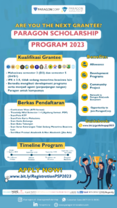 Based on the announcement from PT. Paragon Technology and Innovation regarding the plan to open the 2023 Paragon Scholarship Program (PSP) Scholarship, we herewith convey